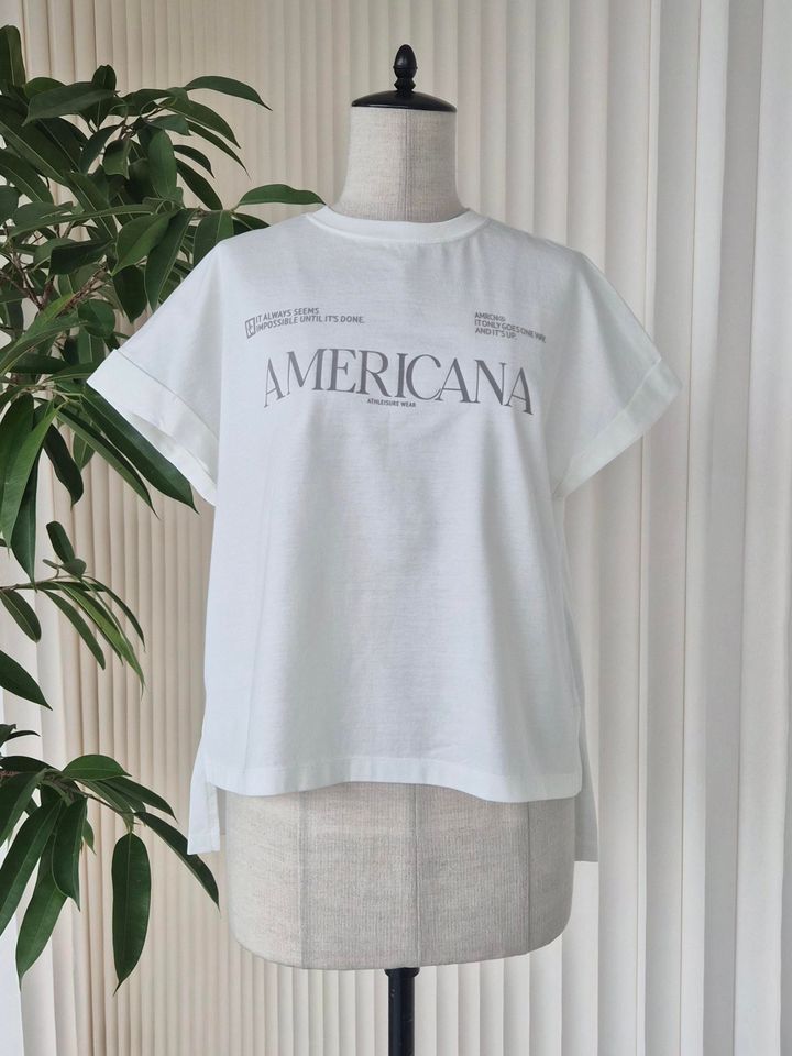 「大人っぽく主張するフロントの英字プリントは、“成し遂げるまではいつも不可能に思える”、“上昇する道しかない”、という元気づけられるメッセージ。生地はさらっとした触り心地で、肌が透けないぐらいの薄手なので、真夏に重宝しそうです」(エディターSEIMU)