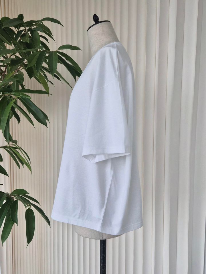 「生地は肉厚でしっかりしているので、透ける心配はなし。そのうえ、体に張り付かないビッグシルエットなので、タイトなTシャツに比べて汗染みもしにくく、安心感があります」(エディターRISA)