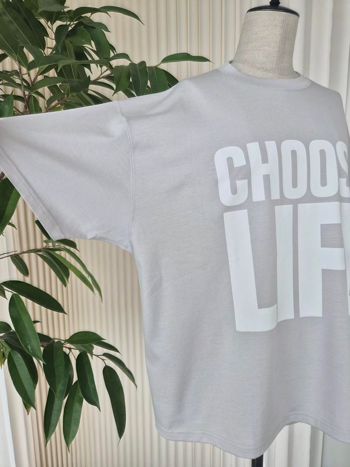 「『キャサリン・ハムネット』を象徴するスローガンTシャツが、コットン・イン・コンバージョンを使った生地で登場! ブランドがずっと大切にしてきた“CHOOSE LIFE”という力強いメッセージとの親和性も抜群で、まさに意志の宿ったすてきなTシャツ。年々暑くなる夏に、着ているだけで心が上向きになれるような服があれば最高ですよね」(エディターRISA)