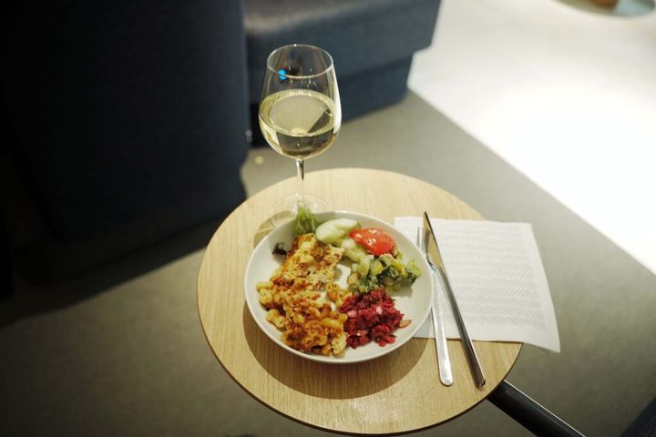 ビジネスラウンジでは、食事やアルコールが楽しめる。ゆったり寛げるソファやワーキングスペースも。