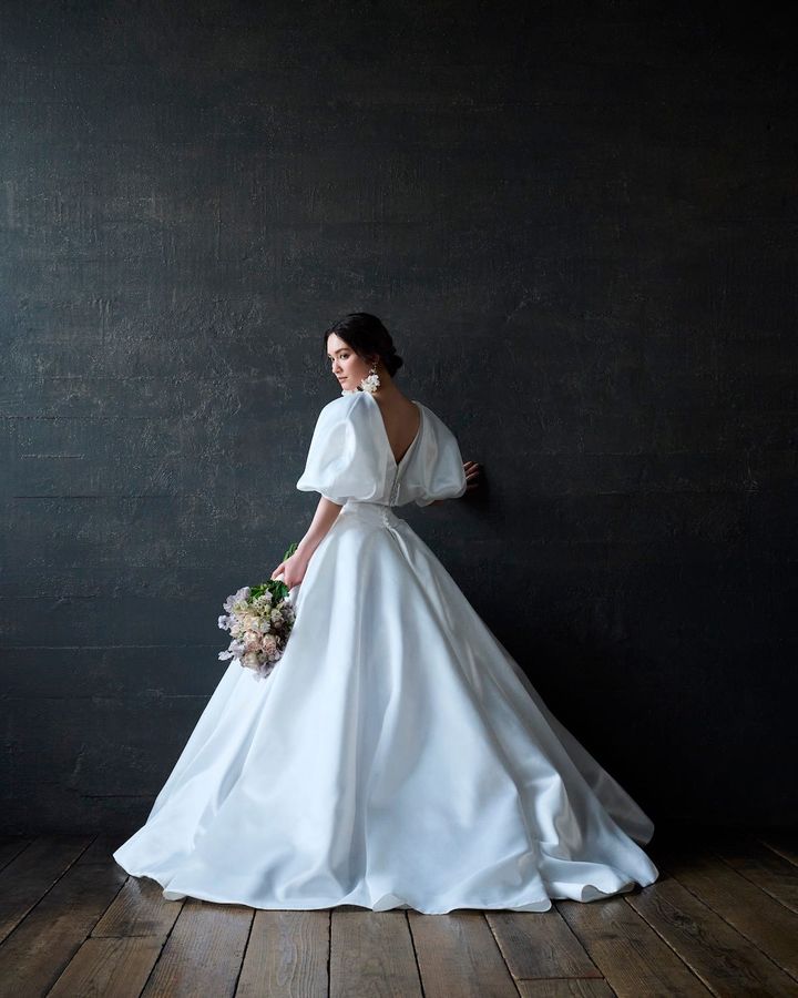 ミカド織のシルクやダッチェスサテンなど、重厚感やハリのある素材を使ったドレスは、上品でありながら主役にふさわしい存在感や格の高さを感じさせます。花嫁のオーラを放つ品格ドレスを、人気のドレスショップからピックアップしました。