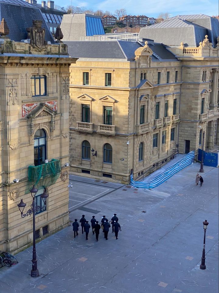 名残惜しくもロンドンへ帰る日曜の朝。確実に重くなったスーツケースのパッキングをしていると、窓の外からふいに笛の音色が。どこか小学生の合奏のような、素朴で懐かしいメロディ。急いでバルコニーから下をのぞくと、そこにはバスクの民族衣装に身を包んだ小さな鼓笛隊が隊列を組んで進んでいた。