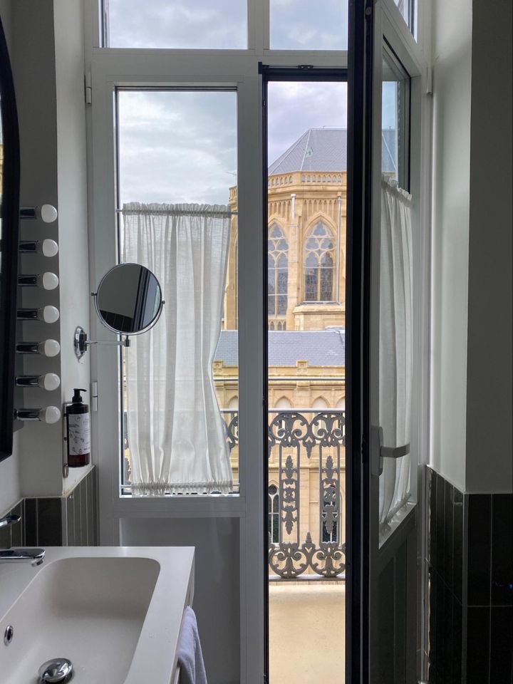 サンセバスチャン大聖堂が覗けるバスルームがお気に入り。