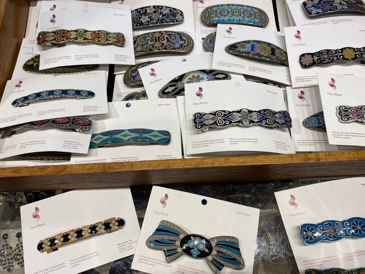 今回見つけたのは、1953年にマヨルカ島で創業されたファッションジュエリーブランド、Clara Bijoux (クララ・ビジュー) のバレッタ。職人が一つ一つ丁寧に手作業で色付けするアールデコ調のカラフルなデザインがタイムレスで可愛い。合金にエナメル加工を施したファッションジュエリーなので気負わず普段使いできるのも○。