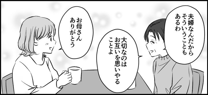 母に「甘えすぎ」と諭されてもまだ完全に納得できなかった私は、母に反論します。私ばっかり我慢して、結局女性が損だと思うのです。「損ねえ……ユウキくんだって、いろいろ我慢してると思うわよ?」母の言葉に私はハッとしました。