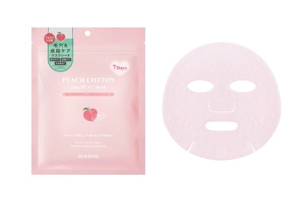 「ピーチコットンジンクPCAマスク(7枚入り)」は、ビタミンCが豊富な桃を使用したスキンケアシリーズから展開するアイテム。