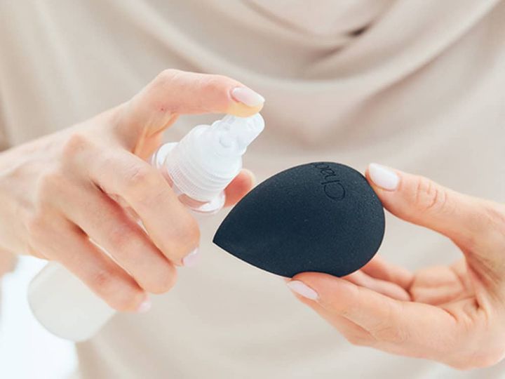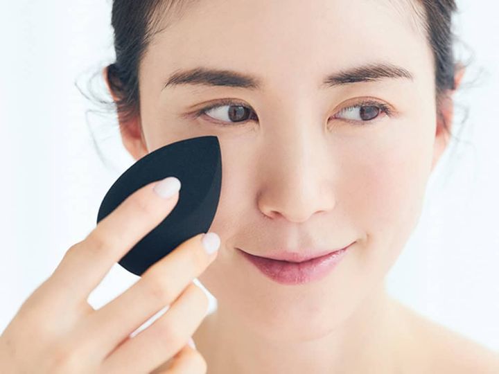 2. スポンジにメークキープミストを含ませファンデを取り塗布していく