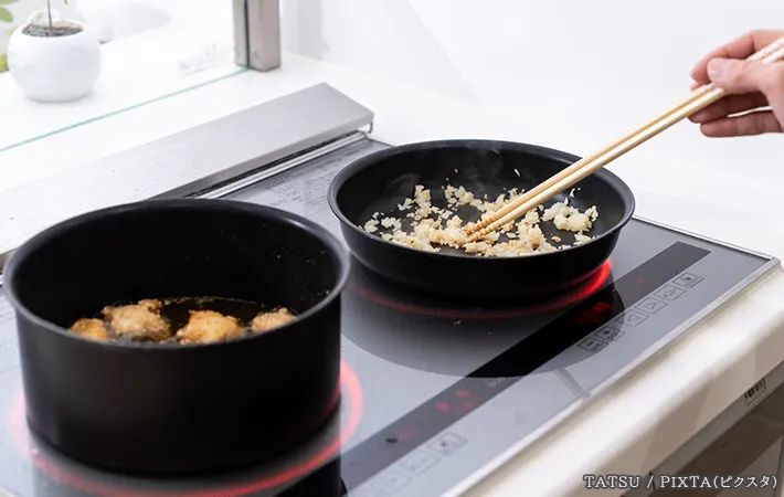 IHクッキングヒーターは、火が出ないため安全性が高く、掃除も楽です。