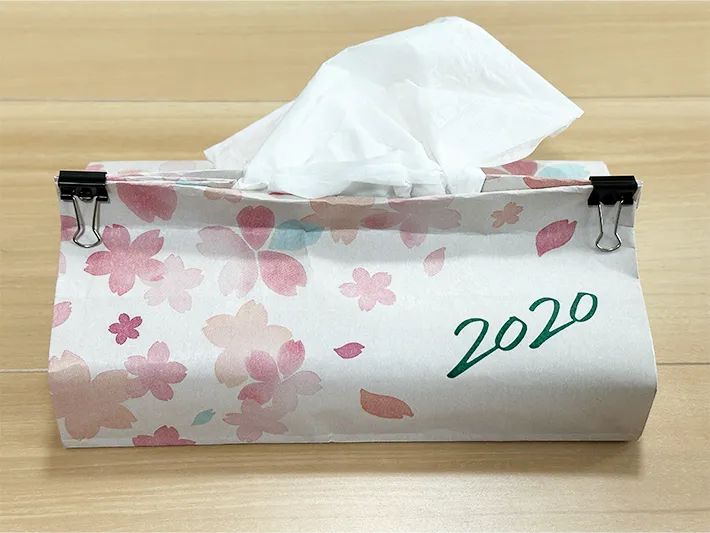 ティッシュを引き出した状態で、両端をダブルクリップなどで留めれば完成!