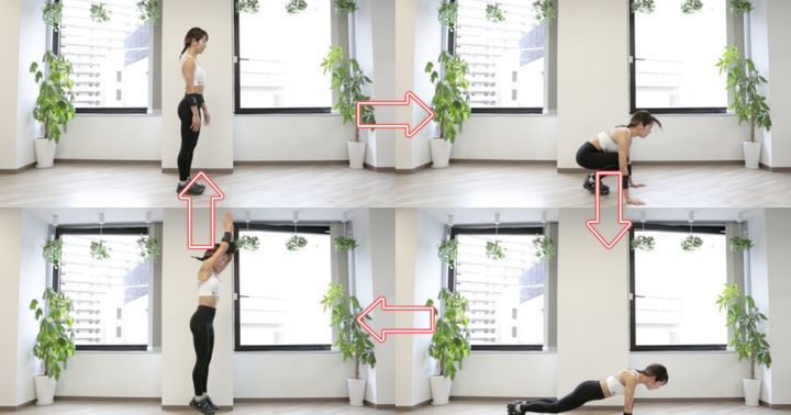 サーキットトレーニングだと行う種目が多すぎて覚えるのが大変そう……という方におすすめなのが「跳ばないバーピー」です。全身を使った有酸素運動で、効率よく体を鍛えることができます。