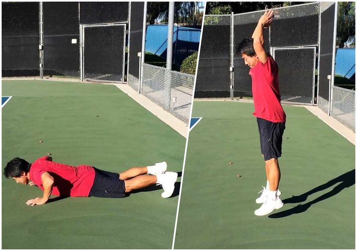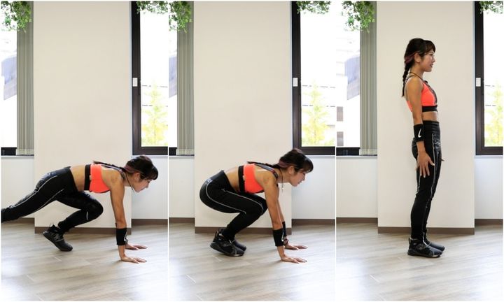 この欠点を解消するためには、ゆっくりと手をつき、足を動かして、ジャンプせずに立ち上がり動作を繰り返すのが、今回紹介する「跳ばないバーピー」です。