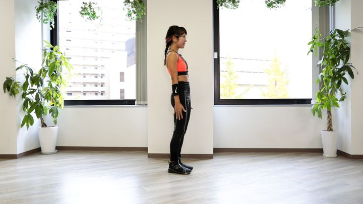 このとき、必ずまっすぐ立ち上がるようにしましょう。お尻と腰に負荷をかけることができます。