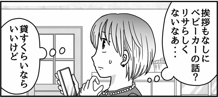 内容は「ベビーカーを貸してほしい」というもの。挨拶もそこそこに言われたので驚きましたが快諾。家に招待されたと思い、手土産を用意して訪問しました。