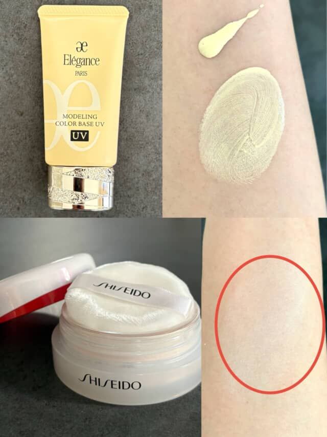 ▲(上)エレガンス モデリング カラーベース UV 30g ¥5,500(税込)SPF40 PA+++ / UV耐水性★ ※画像はYE441 / (下)SHISEIDO エッセンス スキンセッティング パウダー 7g ¥5,500(税込) ※画像は01 Hydrating GLOW ※価格は編集部調べ