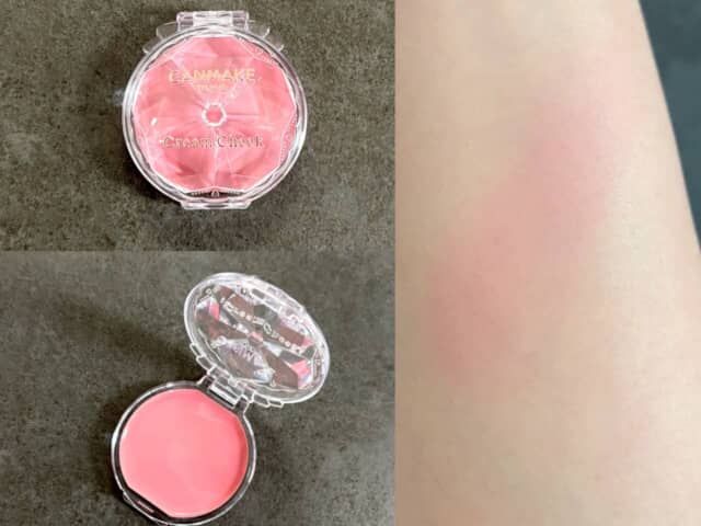 そこで使いやすいのが、キャンメイクの「クリームチーク」。指の腹にとり、少し高めの位置にのせて横に広げるだけでOK。タップするだけで自然になじみ、ツヤと血色を同時に仕込めます。