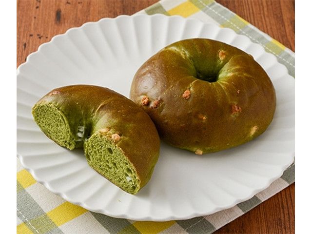 抹茶生地にホワイトチョコを練り込み、湯煎後に焼き上げたベーグルです。 カロリー:237kcal 【販売地域】関東