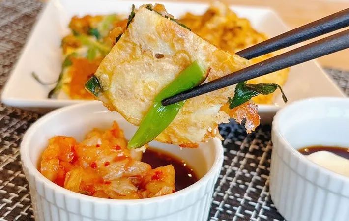 ちくわの旨みがチヂミ生地になじんでいて、一口食べると、風味が口いっぱいに広がります!