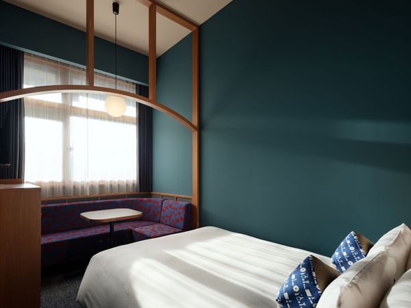 青は旧市庁舎の艶のある陶磁器タイルの色/ダブルルーム(画像提供:OMO7横浜 by 星野リゾート)