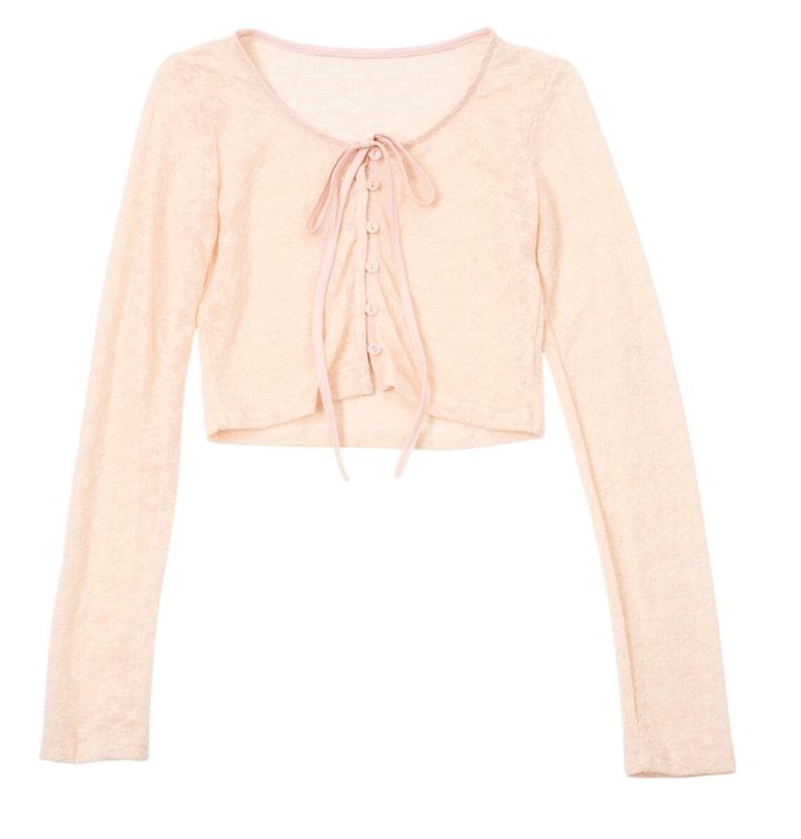 (上から)ふっくらシルエット&リングドットボタンもポイントです。¥6,517/ロゼフランツ(HANA SHOWROOM)、ペールピンク&リボンが春に映えるロマンティックな1枚。¥2,969/フィリー、袖口と裾にプチフリルが。肌が透けないほどよいリブ素材。¥4,990/ローリーズファーム(アダストリア カスタマーサービス)、さらりとした肌触り。リブがないのでとことんカジュアルに着られる。¥5,390/カラーミー