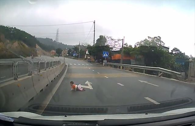道路をひとりで横断しようとしていたハイハイする赤ちゃん。 ドラレコが記録していた衝撃の映像は、こちらからご覧いただけます。