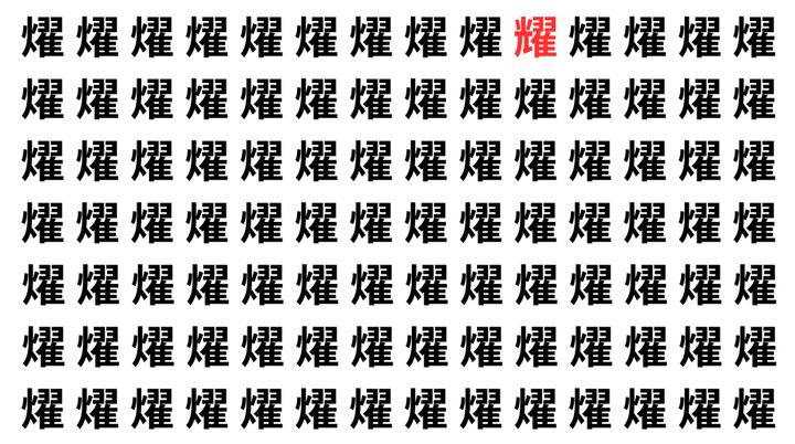 たくさんの「燿」の中に、よく似た別の漢字が1文字だけ隠れています。