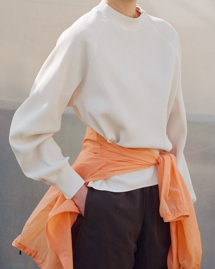 トップスには、軽量で膨らみのあるサーマル素材のモックネックTシャツや、プラスチックフリー素材のスリーブレスなど、快適な着心地と環境への配慮を両立したアイテムがラインナップする。