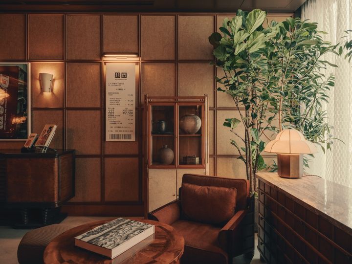 伝統的な漆器から着想を得た、艶やかな深いマルーンレッドの壁がきいたラウンジ。会員はラウンジのみの利用も可能で、コワーキングスペースやリラックスできる場として活躍。 Edvinas Bruzas