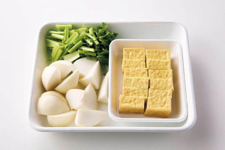 ほっとする味が恋しくなる日に。みりん・酒・しょうゆを〈1:1:1〉で合わせた、覚えやすい味つけの煮ものをどうぞ。厚揚げにじんわりと味がしみて、やわらかなかぶの甘みとよく合います。