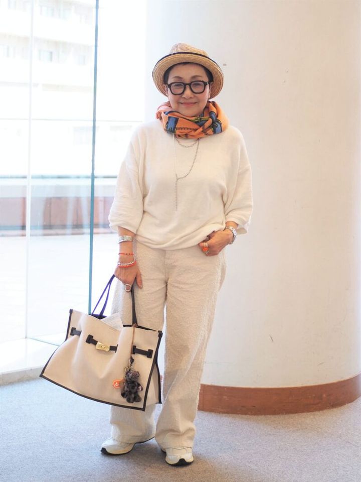 【スナップ】のっぺりしない“全身白コーデ”の法則は?おしゃれ上級者に学ぶスカーフの巻き方&小物選び