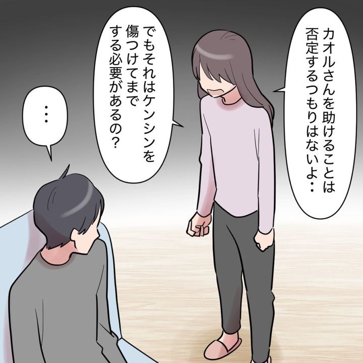 耐えられなくなった私は「母子家庭で育ったなら、ケンシンの気持ちが分かるはずでしょう!?ケンシンは今、あなたから見捨てられるかもって不安になってるんだよ?」と必死に声を荒げます。