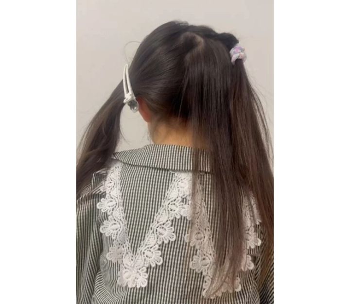 すべての結び目にはかわいいヘアゴムを使ってあげてくださいね!