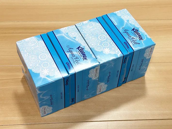 収納ケースを作るために使用するのは、ティッシュの空箱2つと、ハサミ、セロハンテープです。