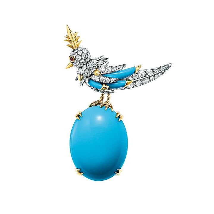 “バード オン ア ロック by ティファニー”ブローチ[Pt×YG×ダイヤモンド×ターコイズ×ルビー]¥15,950,000[参考価格](Tiffany&Co./ティファニー・アンド・カンパニ・ジャパン・インク) Hearst Owned