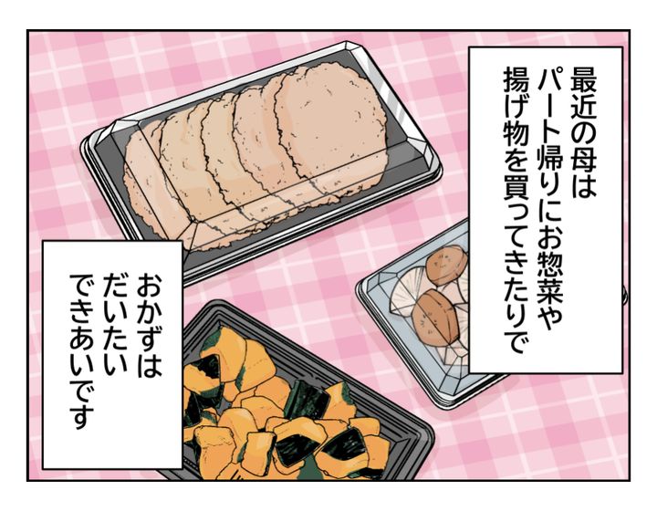 【出戻りシンママ娘「ご飯作って」】惣菜ばかりでモヤッ。手料理が食べたい…#4コマ母道場