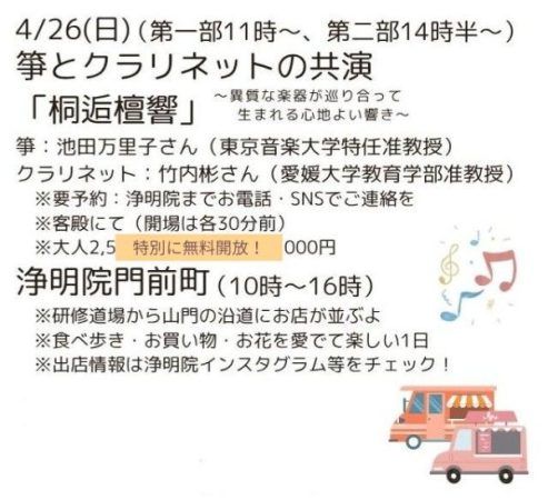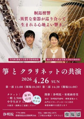 4月26日には、箏とクラリネットによる珍しい共演も開催され、和と洋が織りなす特別な音色を楽しむことができますよ!