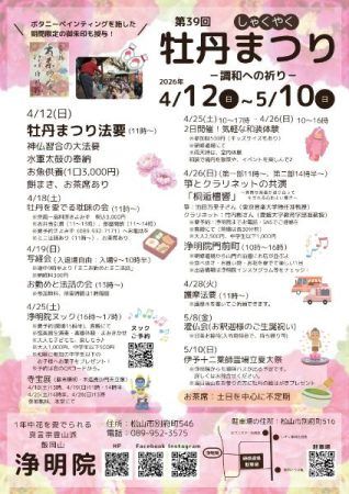 美しい花々を楽しめる、春になりましたね! 松山市別府町の浄明院では、今年も「第39回 牡丹まつり」が開催されていますよ!