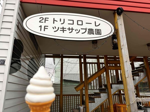 2階建ての建物で、1階には「ツキサップ農園」ドッグカフェ?ジェラート専門店?ソフトクリームの人気店?興味深いお店です。どちらのお店でも同じメニューを楽しめるという、ありがたいチームワークがあるのも魅力です。