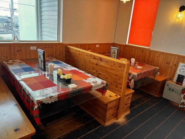 テーブルはとても広くて、料理の置き場所に困らず快適に過ごせます。席はテーブル席の他に、小上がり席やカウンター席があります。 個室はありませんが、貸切は20人以下であれば相談可能です。 全席禁煙ですが、灰皿があり入口外のテラスでの喫煙は可能です。