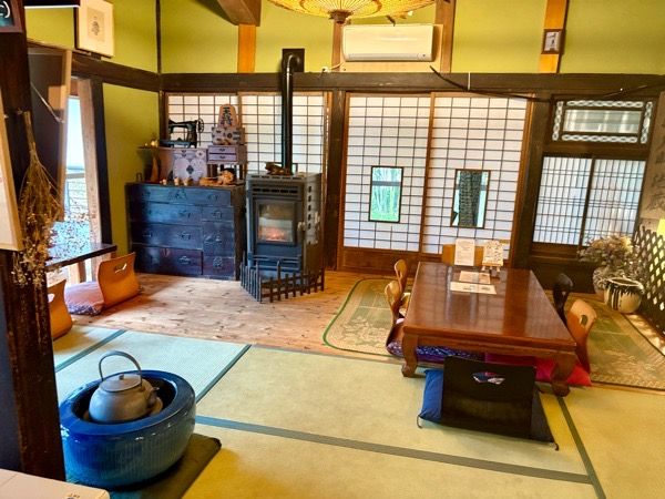 店内は、前に住んでいた方の調度品が大切に生かされています。 伺った日は雨で、肌寒い日でしたが、ペレットストーブの火が温かく、田舎のおばあちゃんちに泊まりに来たような、懐かしい気持ちになりました。