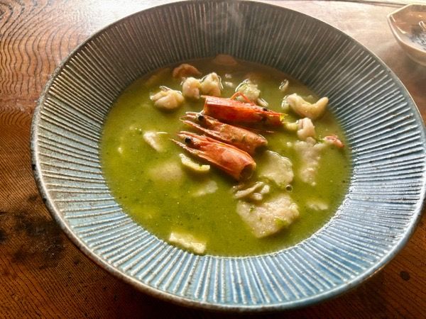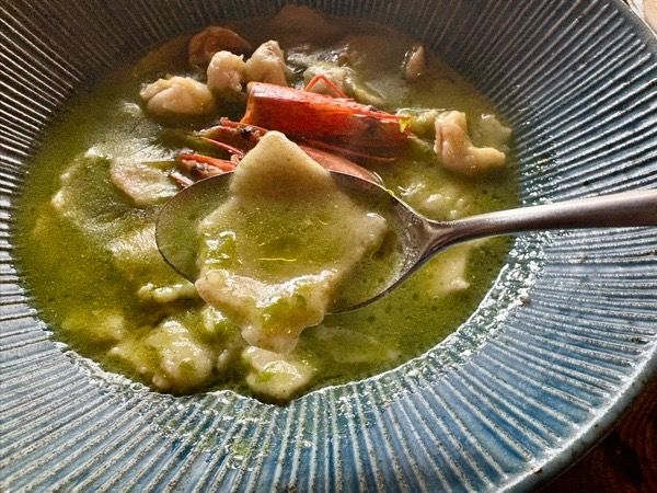 ハットパスタはすいとんを小さくしたような一口サイズ。モチっとした歯ごたえで、全粒粉の香ばしい味がします。 ソースは、海老の出汁がしっかりと感じられ、大ぶりの海老もたっぷりはいっています。 サラッとしたスープなので、あっさりペロリといただいちゃいました。
