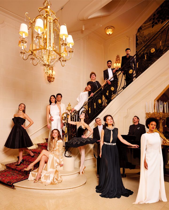 マイア・マッカテリを中央に、オペラ座のダンサーたちと世界から集まるオペラ歌手。リッツ・パリにて。photography: Julien Benhamou x Studio Fontan