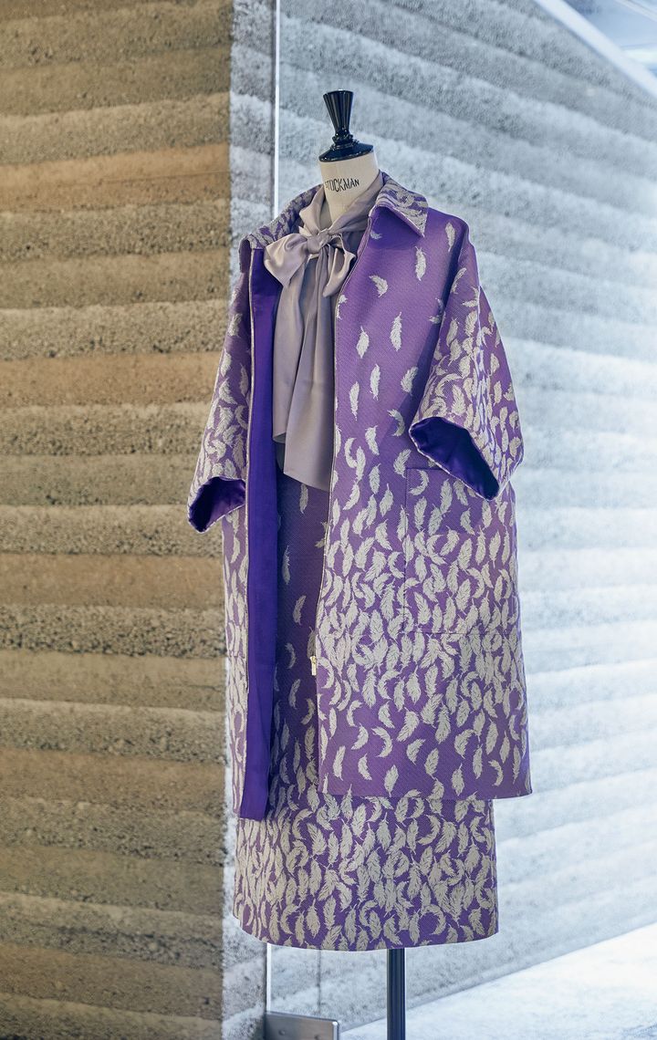 2023年秋からはウィメンズのプレタポルテコレクション「HOSOO Couture」がスタート。今シーズン、デザイナーの吉武味早子氏がクリエイションを手掛け、タイムレスなアイテムを揃えている。立体的な織りで魅せる「フェザーズ」のコートとスカートは装う喜びを思い出させてくれるエレガントさ。