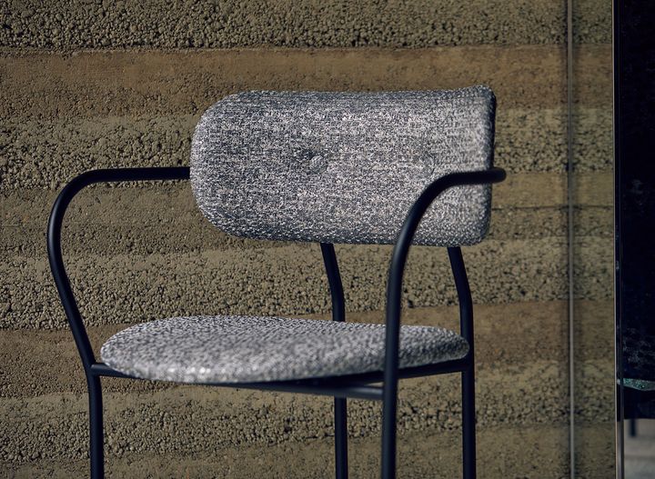 空間のそこかしこに置かれた家具もHOSOOの織生地があしらわれて。