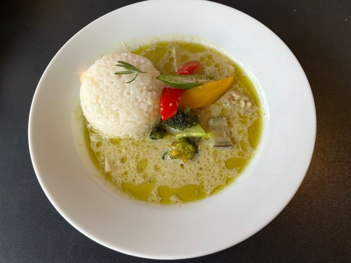 ココナツの甘さとスパイスがちょうどいい、体がホカホカするようなグリーンカレーです。