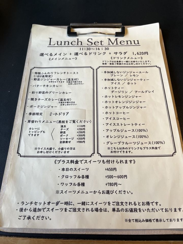 ランチメニューをお願いします。メイン・ドリンク・サラダで税込1,620円。