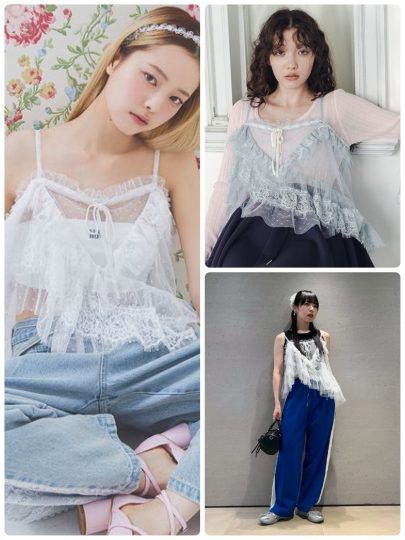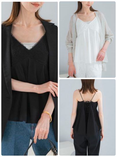 3. 1枚でもレイヤードでも。“今っぽさ”をつくる【レースキャミ】