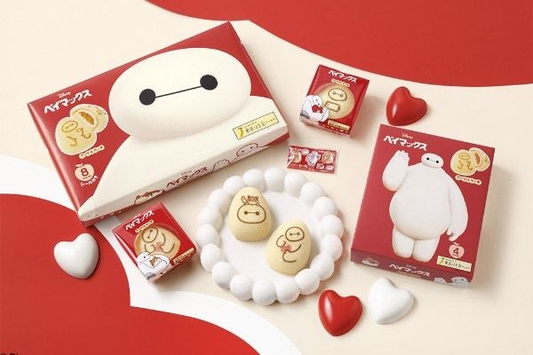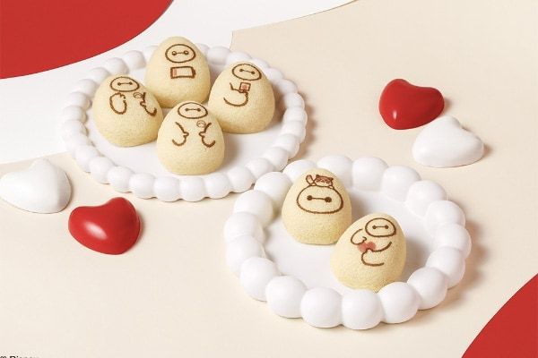 「ベイマックス」の赤いパワードスーツをイメージしたりんごジャムと、真っ白ボディを思わせるミルククリームを、スポンジケーキで包みこんでいます。表面にあしらったデザインは、全部で6種類となっています。