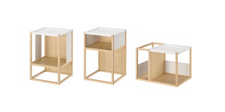 新作の「ギッレルスベリ」は、トレイとサイドパネルを自由にアレンジでき、多用途に使えるサイドテーブル。直線的かつミニマルなフォルムで空間に馴染みやすく、フレームの竹は使い込むほどに風合いが増すのも魅力。軽量で移動しやすいうえ、横向きにも置けるので、限られた居住スペースにも柔軟にフィットする。ベッドサイドはもちろん、玄関やリビングなどでも活躍する新感覚の1台だ。