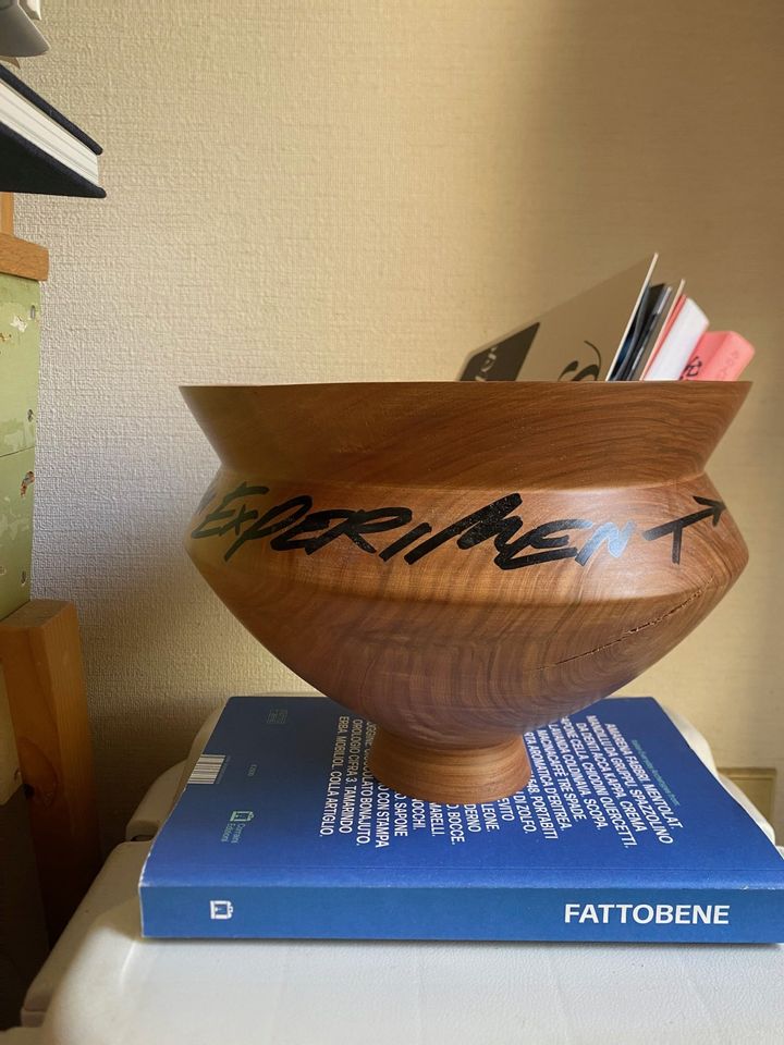 「盛永省治さんの作品は、少しずつ購入させていただいていて。年々、ひとつずつ増えていくのも嬉しいし、人柄があふれる作風に、いつもワクワクします。スツールは、キノコのように愛らしく、滑らかなラインが気に入りました。花瓶や本を置くサイドテーブルにも。合わせる家具や置く場所を選ばない万能なプロダクトです。写真は、内田洋一朗さんのアートワークとコラボレーションしたウッドボウル。細々したものをバサっと入れるだけで、その収納がとても素敵にみえてしまうほど便利。形違いで並べて、植物を飾ったり、食材を入れたりと、こちらも万能。そばに置くことで落ち着いた気持ちになれるのは、自然から生まれた素材だからなのはもちろんですが、同じものはない、手作業から生まれたものだからでしょうか。色合いの経年変化も、共に生活していく上で楽しみなことです。一生大切に使いたいと思います」