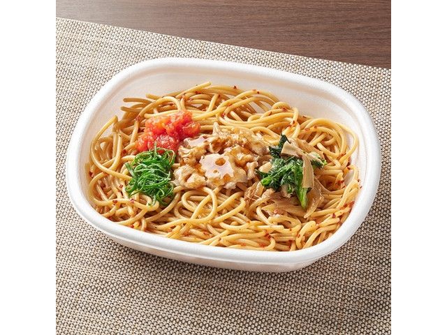 昆布だしをきかせた醤油ベースの味わいの太麺パスタに、具材として豚肉・ダイストマト・ねぎ・炒めたきのこ・玉ねぎなどをトッピングした、食べごたえのある大盛の和風パスタです。 ※宮崎県、鹿児島県では取り扱いがございません。